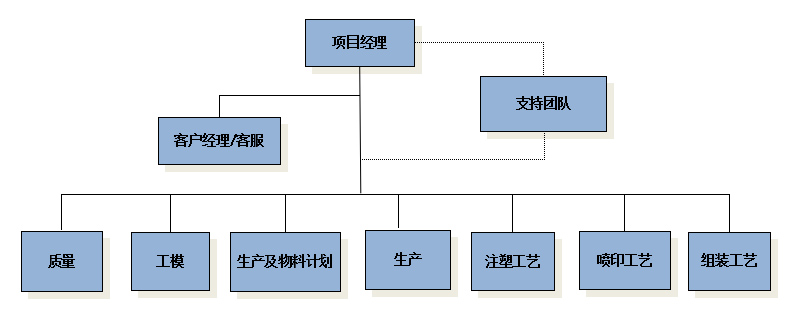 支持團(tuán)隊(duì): 包含所有的部門(mén)經(jīng)理和關(guān)鍵崗位主管,提供項(xiàng)目所需的資源